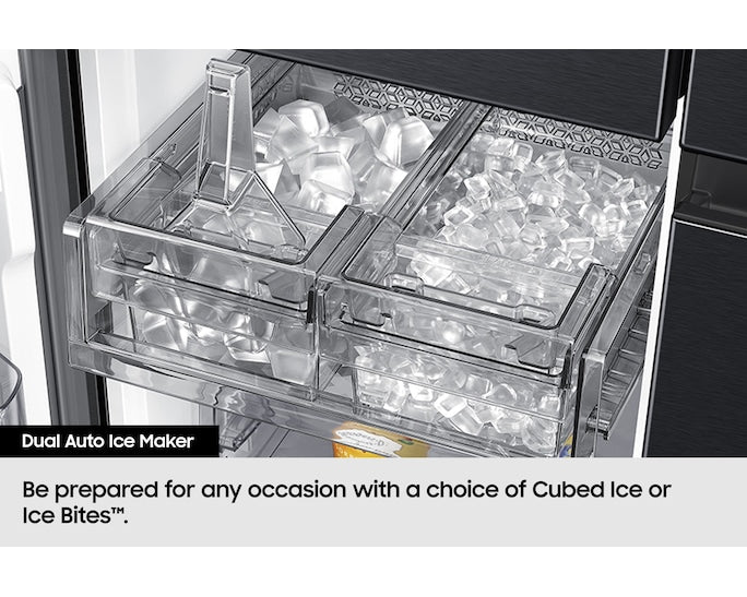 The Samsung RF8000BC features a convenient Beverage Center, offering quick access to chilled drinks. Whether you're entertaining guests or quenching your thirst, this feature is designed for your convenience. The 3-door French style design ensures easy organization and access to your groceries.
