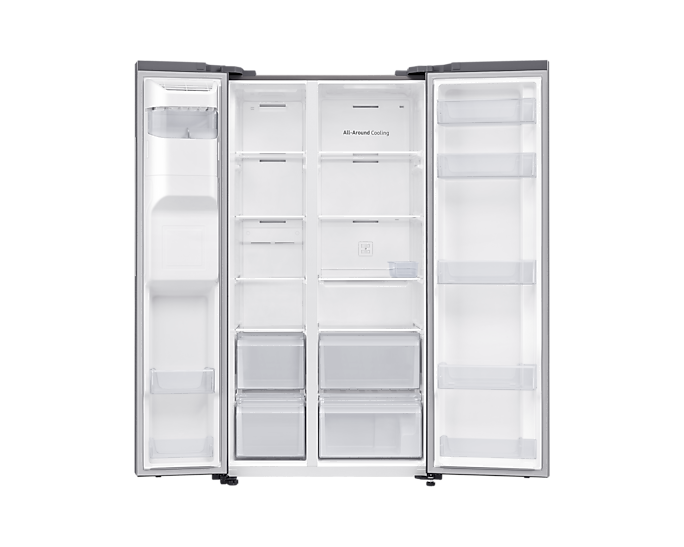 The Samsung RS5000DC Side by Side Refrigerator offers an impressive 635L capacity, allowing you to easily store a large variety of food items. The Silver finish gives it a sleek and modern look, making it a perfect addition to any kitchen. Incorporating Samsung's advanced SpaceMax Technology™, it provides more storage space inside without increasing the external dimensions, so you can keep everything you need more organized.