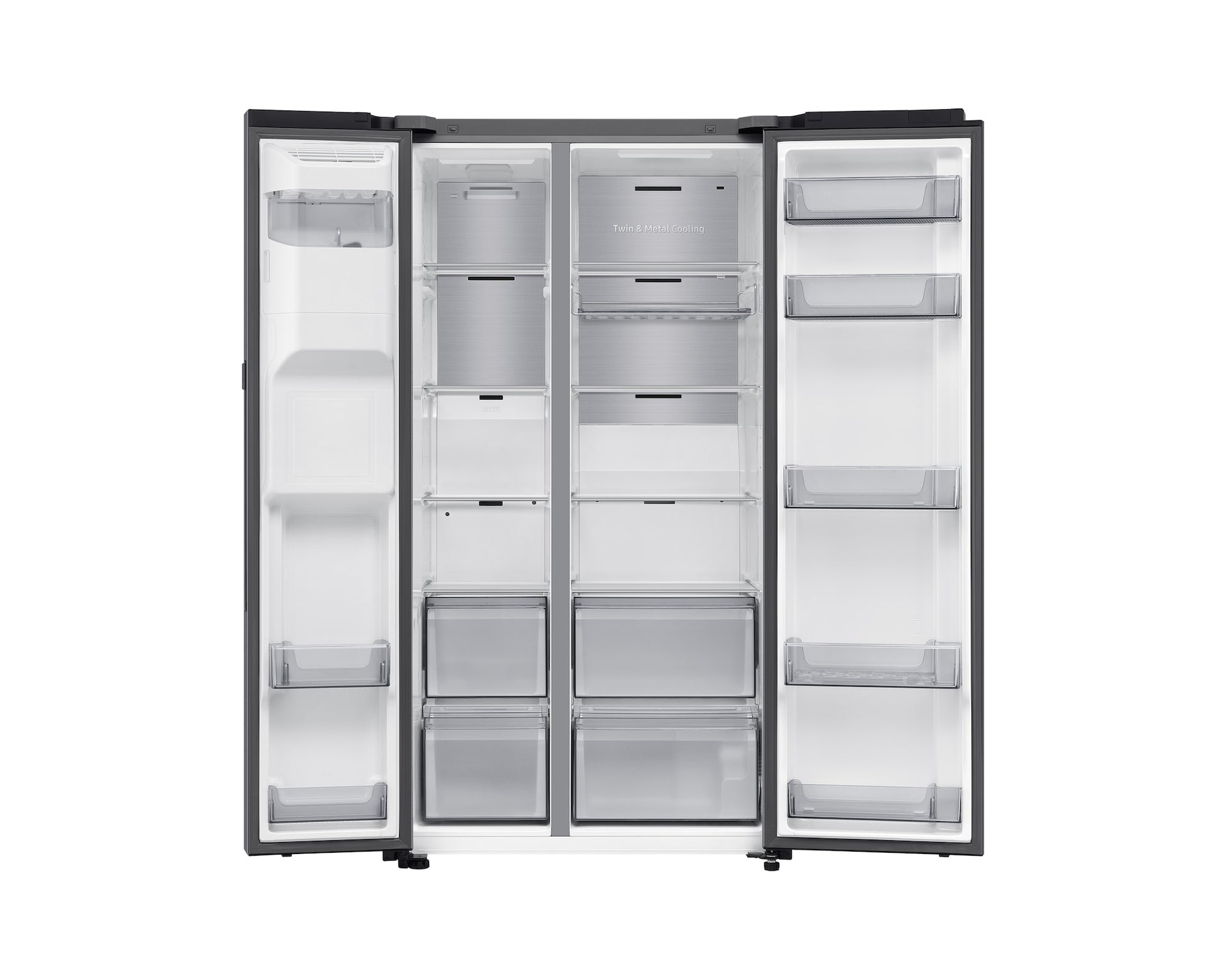The refrigerator features SpaceMax™ Technology to provide greater interior capacity without increasing external dimensions. All-Around Cooling ensures every shelf and compartment are evenly chilled. Additionally, the appliance comes with an In-Door Ice Maker, conveniently freeing up fridge space. It also includes inseam water and ice dispensers. The flat doors, clear view ice maker, and easy clean steel finish add to the convenience and style of this model.